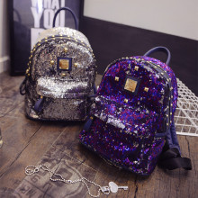 包包2017春夏新款女士亮片背包韩版潮书包休闲铆钉双肩包旅行女包