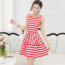 2017新款女装条纹连衣裙中长款韩版夏天修身打底无袖背心蓬蓬裙潮