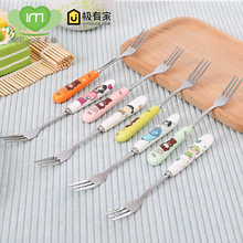 【天天特价】4把陶瓷手柄水果叉可爱不锈钢水果叉甜品点心小叉子