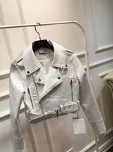 Alice&W花花春季女装新款修身白色机车皮衣女短款皮夹克外套