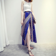 2017夏季新款波西米亚风系带印花开叉沙滩裙女度假雪纺长裙女