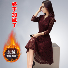 2016冬季中年长袖蕾丝加绒加厚妈妈连衣裙30-40-50岁中长款冬裙女