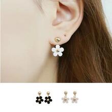 韩国进口正品耳饰 韩版韩式五叶花耳钉耳环 日韩黑白花色首饰品