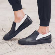 2017春季新款男鞋 真皮男士休闲 拼色圆头男鞋潮流时尚套脚板鞋男
