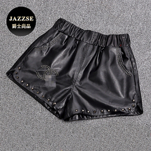 欧洲站2017早春新款真皮绵羊皮短裤小香风铆钉修身百搭包臀裤子女