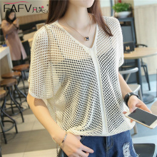 防晒衣2017春夏新款 宽松大码镂空女装针织衫花边V领罩衫空调衫
