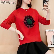 秋冬装新款韩版时尚休闲太阳花圆领针织打底衫长袖宽松套头毛衣女