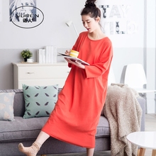 春秋韩版睡衣女士纯棉长袖居家服女秋冬大码套头中长款全棉家居服