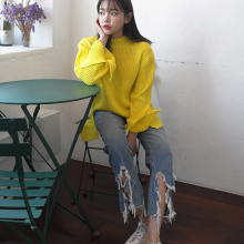 2017春季新款破洞牛仔裤女高腰九分裤阔腿直筒裤复古气质宽松裤子