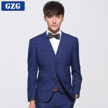 GZG男士新郎西服套装三件套修身英伦韩版休闲结婚礼服格子西装男