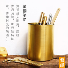新品>纯黄铜笔筒 桌面置物筒文具收纳桶 手工经典复古陈设品礼品