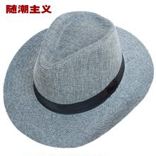 夏天大沿帽遮阳帽 大檐帽英伦复古时尚男士草帽沙滩礼帽爵士帽子