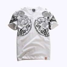 原创中国风日风纹身短袖纹身短袖纹身黑色招财貔貅直筒短袖t恤