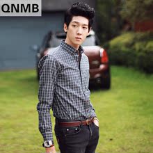 QNMB韩国代购时尚起义男装 韩版修身格子衬衣潮男士长袖衬衫