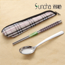 双枪学生白领旅行便携式餐具创意可爱合金筷子勺叉组合套装不锈钢