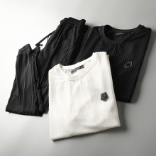 爆款暗黑三杠系 轮廓 棉纶混纺太空棉质 休闲套装 男士套装