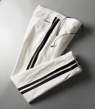 特惠 暗黑三杠时尚风 弹性速干面料 抽绳显瘦小脚运动休闲裤 男