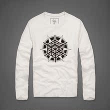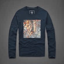 欧美外贸原单男装长袖t恤印花纯棉 秋季男土宽松加肥加大码打底衫