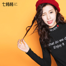 七格格2017春秋甜美个性小高领字母绣花修身打底T恤女短款针织衫