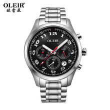 欧雷亚正品手表男士腕表钢带防水夜光男表六针运动多功能石英表男
