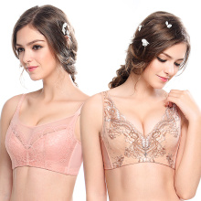 薄款无钢圈文胸薄模杯深V聚拢调整型性感蕾丝夏季大码大胸MM内衣