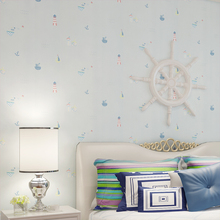 长城壁纸 卡通粉色系 蓝色帆船 儿童房墙纸 卧室满铺墙纸 包邮