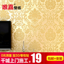 欧式大马士革立体3D壁纸 植绒洒金无纺布墙纸 客厅卧室电视背景墙