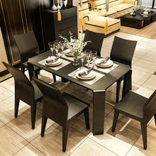 品友 餐桌椅组合小户型 餐桌现代简约吃饭桌子 六人一桌四椅黑色