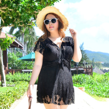 新款 加肥加大码XXXXL妈妈特大码带钢托蕾丝裙式平角裤连体泳衣女