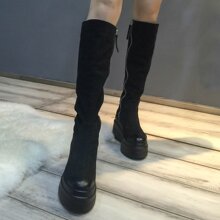 欧洲站女鞋2016秋冬季新款女靴真皮靴子加绒厚底长靴女坡跟高筒靴