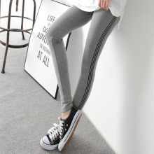 春季薄款字母印花纯棉运动打底裤女外穿弹力竖条纹显瘦小脚裤