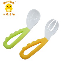 小鸡卡迪专柜正品婴幼儿弯头叉勺训练学习勺子饭勺 PP料双色2只装