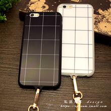 情侣黑白格子iPhone5.5挂绳手机壳苹果硅胶全包软壳6splus亚克力
