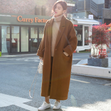 2016冬季新韩国东大门红驼色长款加厚双面羊绒大衣宽松毛呢外套女