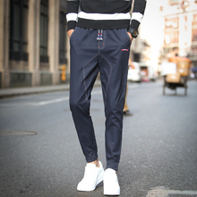 秋季日系小脚休闲裤男士加肥加大码韩版修身潮磨毛直筒束脚长裤子