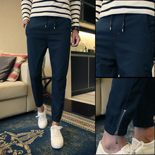 秋季日系松紧休闲裤男加肥加大码拉链束脚裤青年修身潮小脚哈伦裤