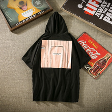 连帽短袖t恤男士加肥加大码纯棉潮胖宽松青少年夏季印花体恤学生