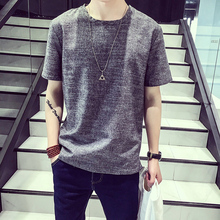 夏季亚麻短袖t恤男士大码宽松棉麻五分袖韩版青少年学生中袖潮流