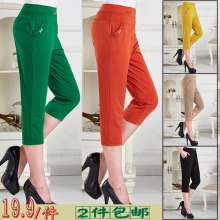 夏季中老年女裤中年女装夏装裤直筒薄款七分裤高腰大码弹力妈妈裤