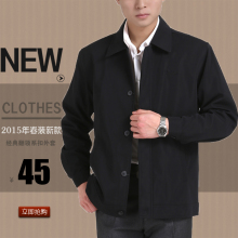 春秋款中年男装上衣大码休闲外套中老年人翻领夹克衫爸爸扣子外套