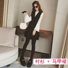 2017春季新款韩版显瘦长袖a字背心裙两件套夏季学生连衣裙女春秋