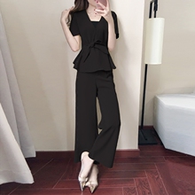2017夏装新款女装潮韩版时尚两件套夏季名媛气质高腰阔腿裤套装女