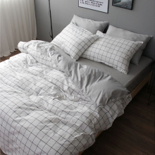 雅娴家纺无印纯棉四件套时尚良品纯色格子床笠全棉四件套床上用品