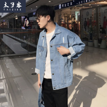 太子客春季新款牛仔外套男韩版长袖衬衫大码破洞夹克休闲薄外套