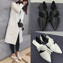 2017春夏季新款韩版气质尖头浅口平底皮带扣豆豆单鞋中空女凉鞋子