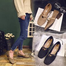 韩版2017春季新款复古方头平底女鞋百搭学生豆豆鞋女单鞋潮奶奶鞋