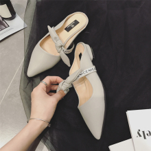 2017春季东大门包头半拖韩国复古蕾丝绑带罗马拖鞋方头平底单鞋