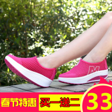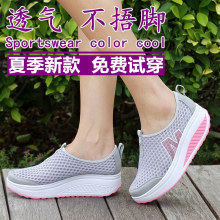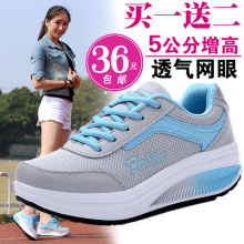 2017春夏透气网面鞋女舒适超轻网布摇摇鞋厚底健步软底增高运动鞋