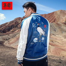 集云潮牌夹克男 青年宽松薄款中国风复古刺绣棒球服男士外套秋季