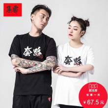 集云情侣装夏 中国风男装休闲半袖印花体恤潮流宽松黑色短袖T恤男